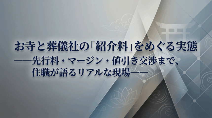 葬儀件数を増やすにあたって、多くの住職が避けて通れないのが「葬儀社との関係づくり」である。とはいえ、紹介料・先行料・マージンといった金銭的な取り決めについては、業界内でもなかなか公には語られることがない。