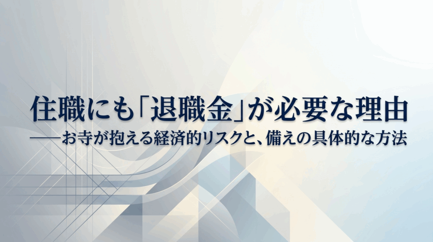 「住職にも退職金が必要なのですか?」——お寺の方々を訪問する中で、担当者がしばしば耳にする言葉である。住職という立場は生涯その役職に就き続けるものというイメージが強く、「退職」という概念そのものが馴染みにくい面がある。しかしその認識のすき間に、深刻な経済的リスクが潜んでいる。