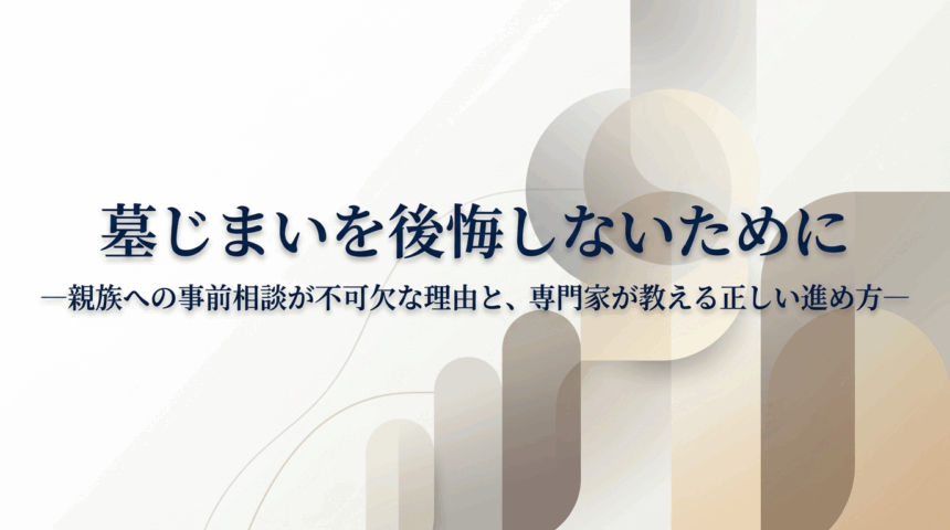 また別のケースとして、ある方が合祀墓への移転を済ませた後、それを知らなかった息子さんが「母親のお骨をどこに納めればいいのか」と慌てて新たなお墓を建てようとしたという事例も報告されています。自分の死後のことまで見越した話し合いが、いかに大切かを示す事例と言えるでしょう。