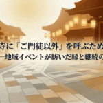 法人を立ち上げた直接のきっかけは、大学時代から続けてきたイベント運営の経験にある。「これまでやってきたことをお寺に持ち帰れないか」——その問いが法人設立へと背中を押した。NPOという形をとることで、複数の理事が関わる組織的な運営が可能となり、また地域の企業や個人との連携もしやすくなったという。