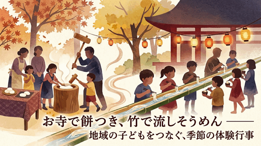 お寺で餅をつき、竹で麺を流す ――季節の体験イベントが地域の子どもたちをつなぐ
